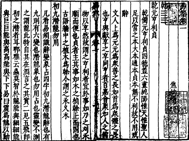 元人董中行说:乾卦的六爻都是奇数爻,都是阳爻,在所有的六十四卦里,只有这个乾卦纯粹都是阳爻,这就叫“阳之纯,健之至”,所以才叫乾。周文王认为国家领导人的才能和道德品质都是最拔尖的,所以政令才会畅行无阻,做事圆融无碍,这就是所谓“元亨”,而领导人只有一直端正思想态度,全心全意做好事,不要腐化堕落了,“元亨”才能保持下去。也就是说,领导人如果心术不“贞”,也就做事不“利”,也就达不到“元亨”之境。