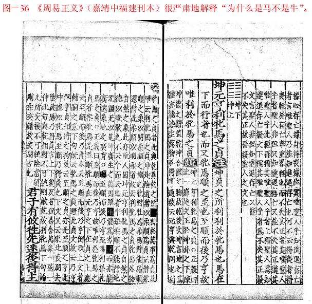 图-36 《周易正义》(嘉靖中福建刊本)很严肃地解释“为什么是马不是牛”。