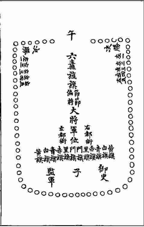 。总管二人,副将子将八人,军队子将押官五十人,群头五百人,善骑马奔走者任。马子一千人,军外差能者御之。