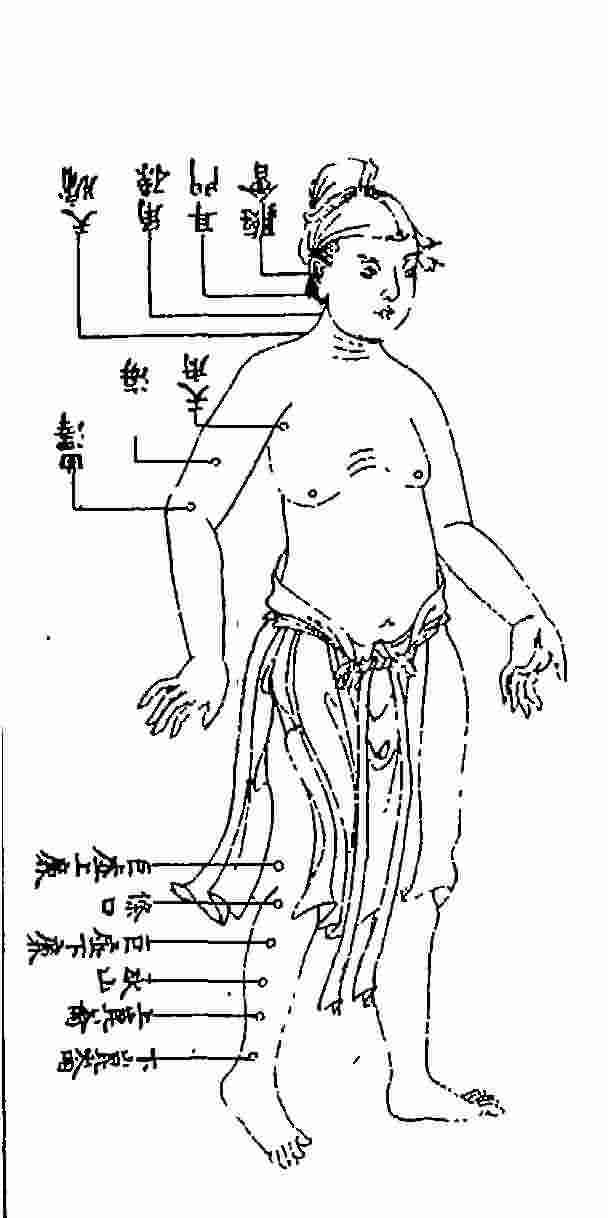 隱白二穴者,木也。足大指端内側,去爪甲角如韭葉、宛宛中。足太隂脉之所出為井。主腹中有寒熱起,氣喘,衄血不止,腹中脹、逆,脛中寒,熱不得卧,氣滿胷中熱,暴洩,鬲(按:通作“膈”)中,嘔吐不欲食。飲渴尸厥不知人脉動如渴飲,身體疼痛唾也(按:似有缺、誤,不通)針入一分。灸三壯。