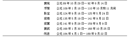 表14 后汉的大将军